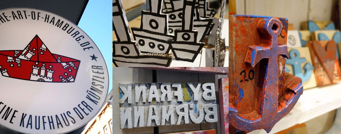 Seit 2006 ist Atelier und das Kaufhaus des Künstlers im Portugiesenviertel unten am Hafen. Wenn die großen Pötte schlafen, ist bei uns immer noch was los. Im gläsernen Atelier gleich neben dem Laden wird gekleckst, gemalt, bedruckt und neue Ideen für unsere maritimen Liebeserklärungen entstehen. Schaut mal vorbei!